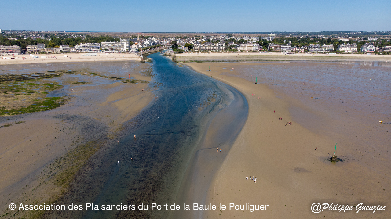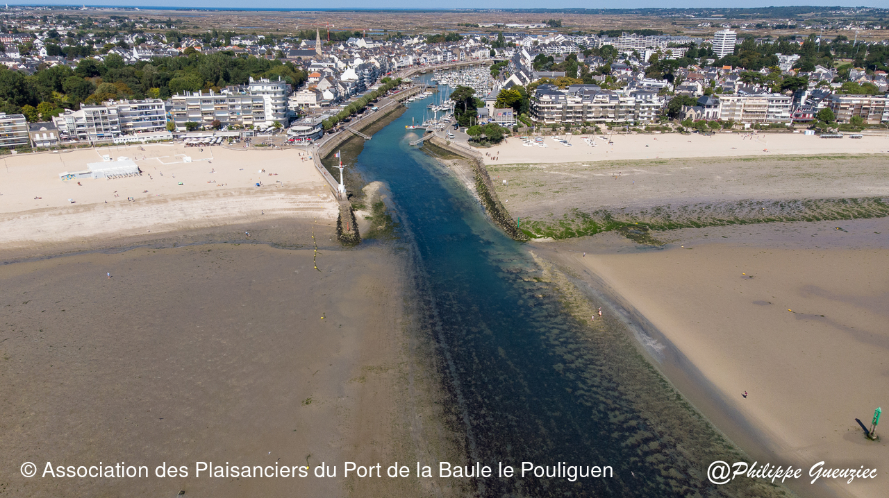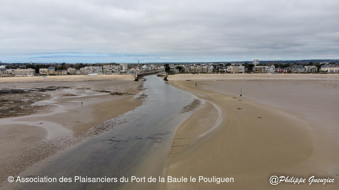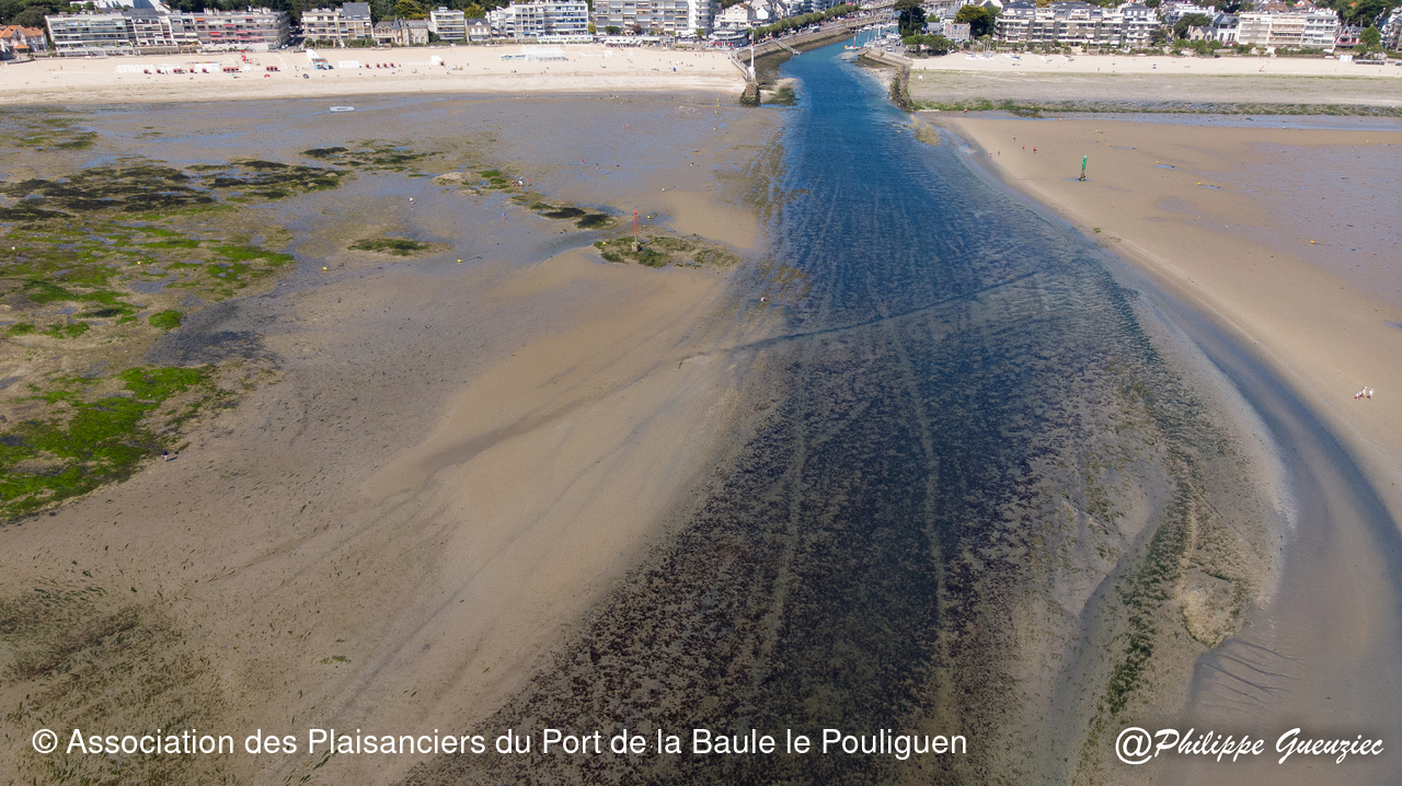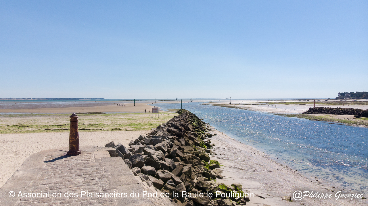 Entrée du port par grande marée basse – repères de balisage visibles.