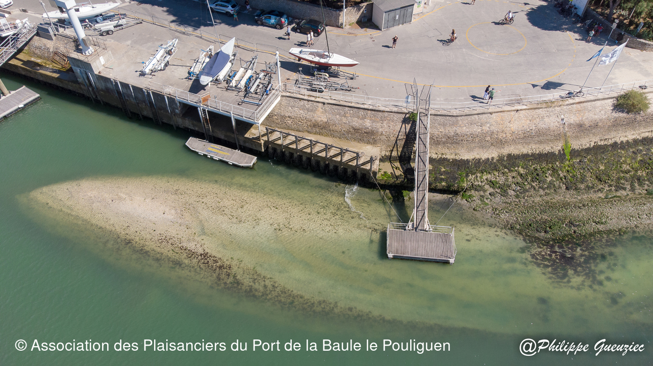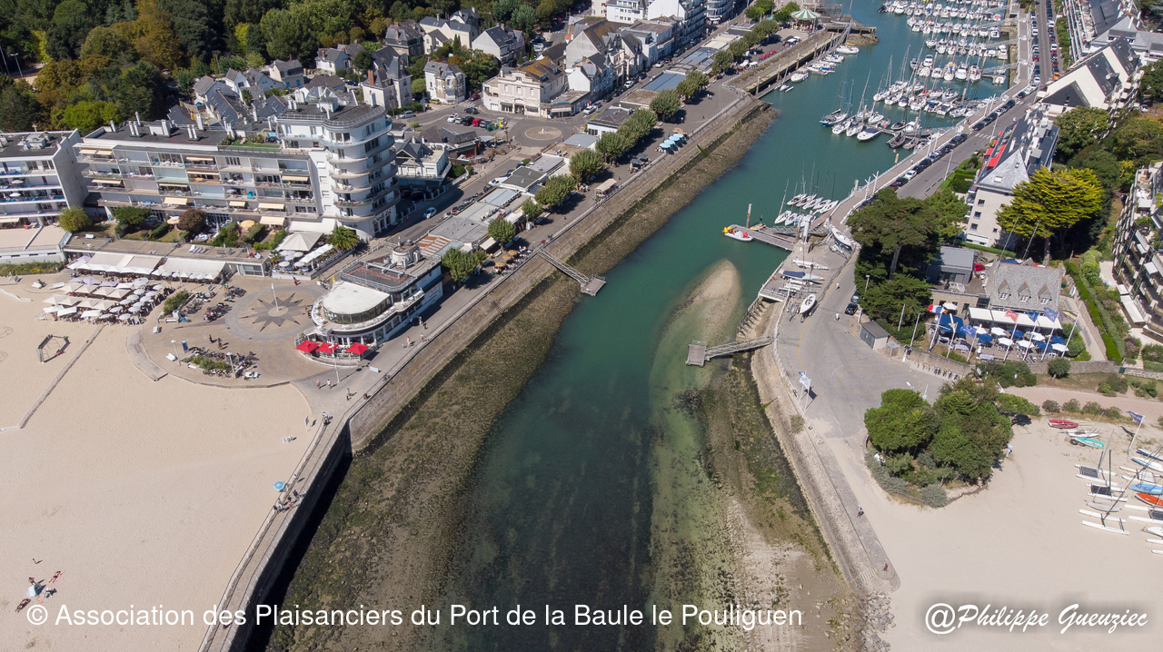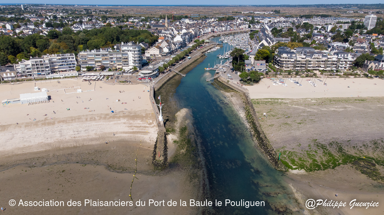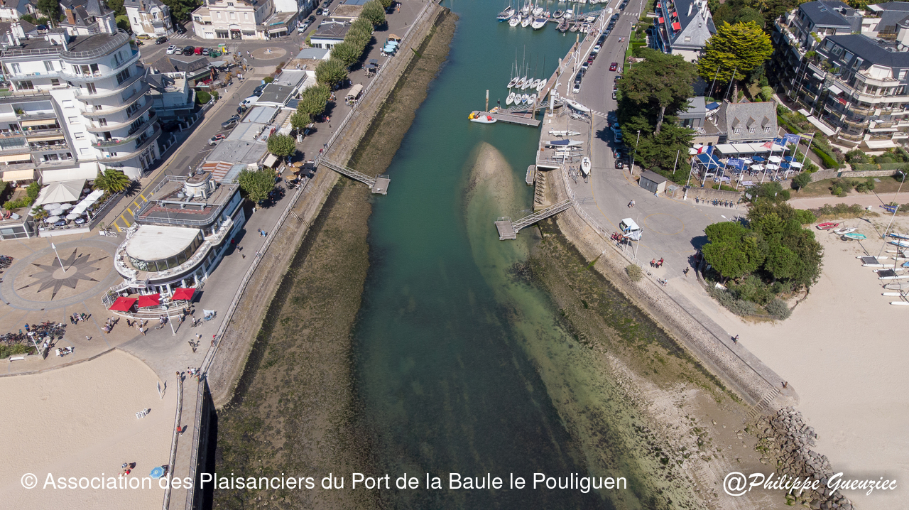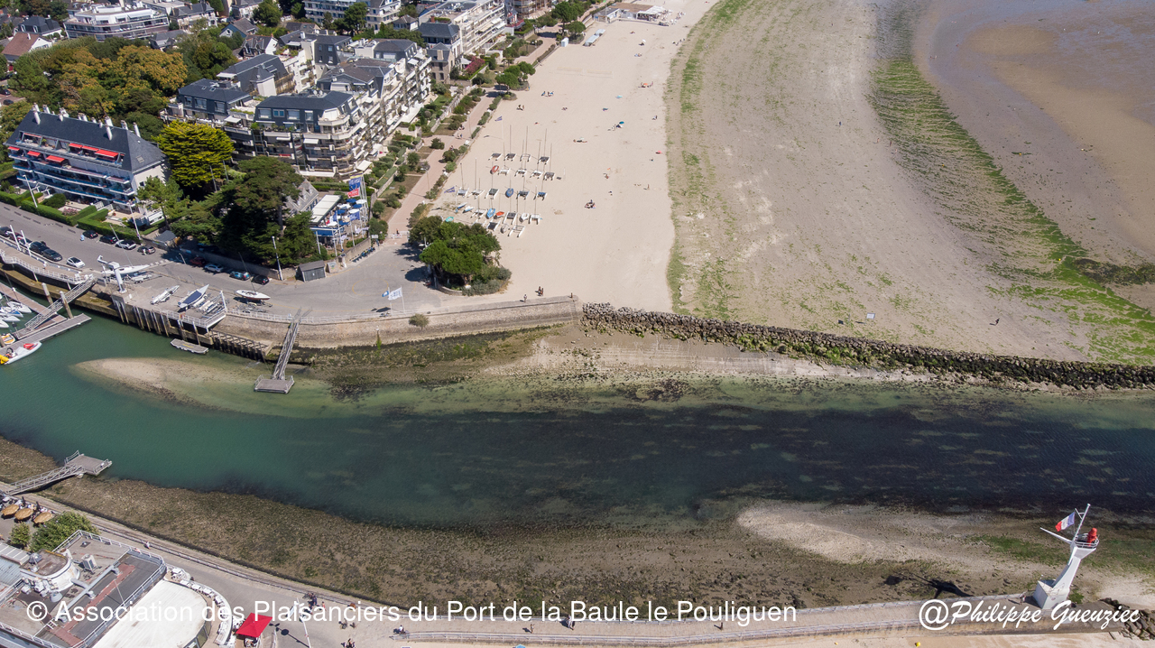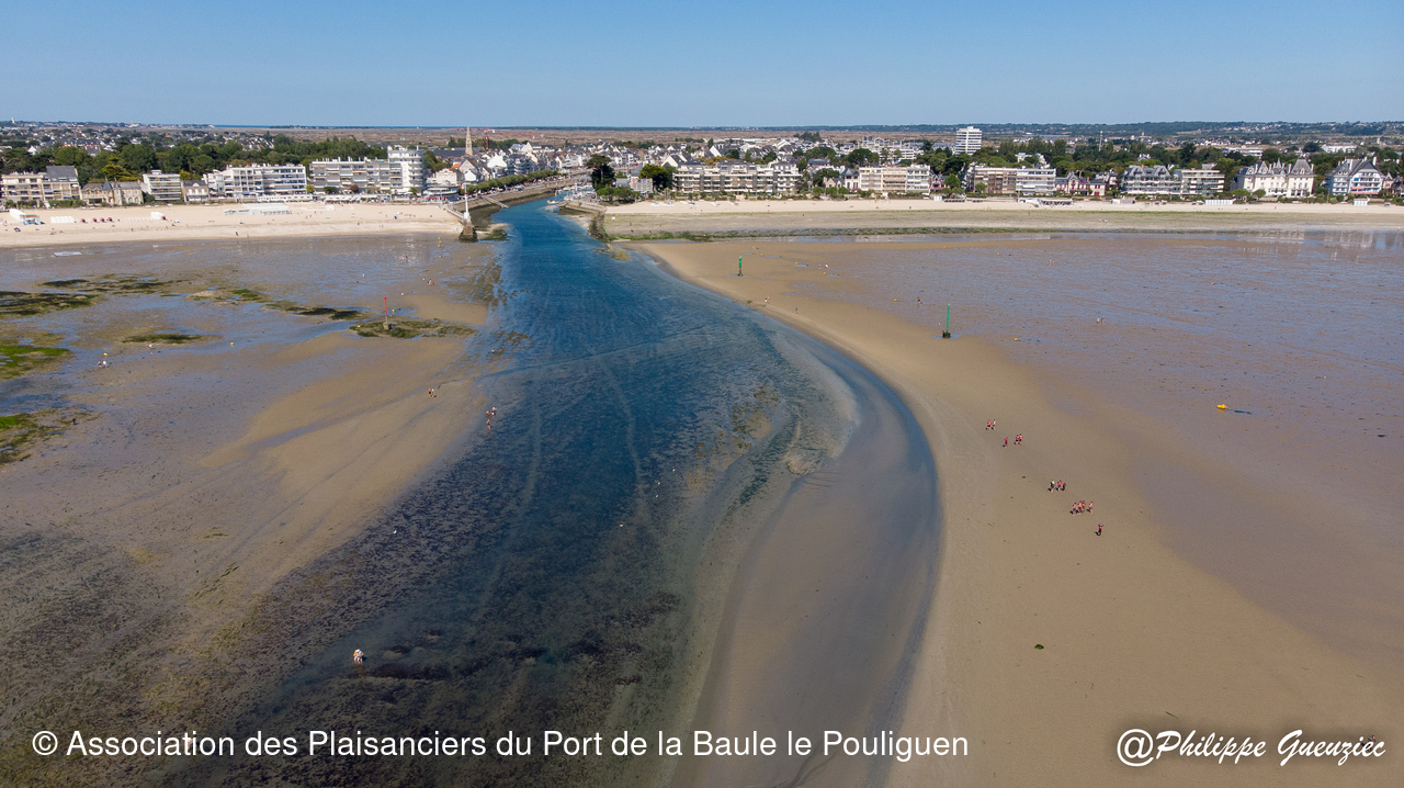 Entrée du port par grande marée basse – repères de balisage visibles.